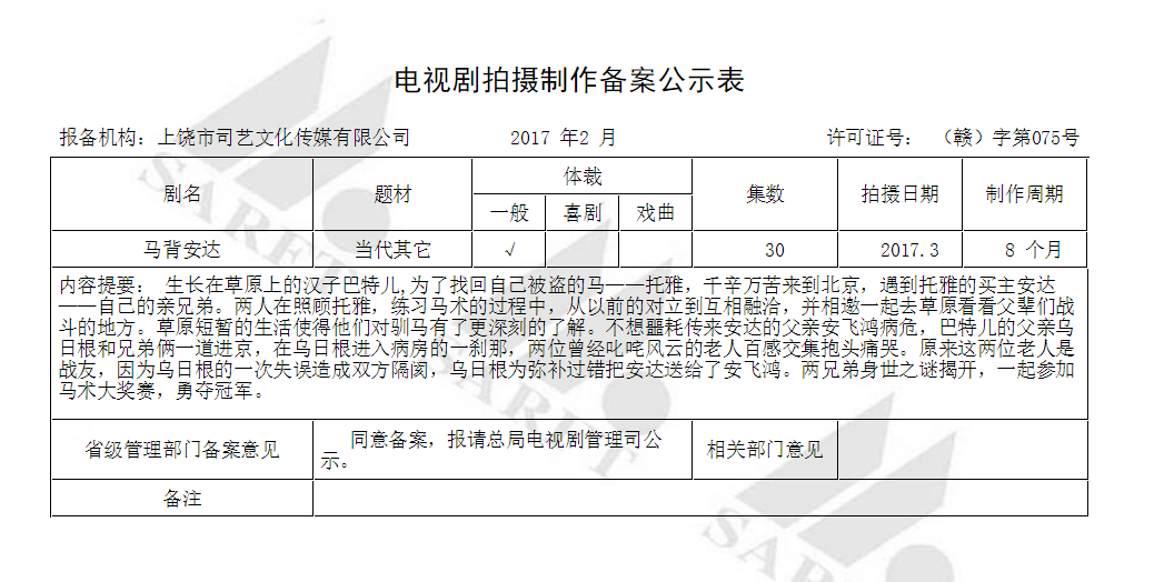 〖劇 名〗 電視劇《馬背安達(dá)》